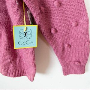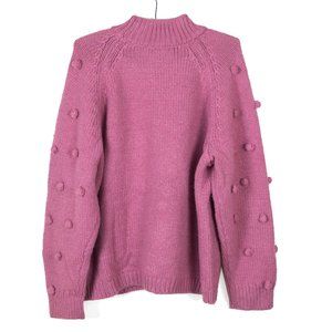 CeCe Light Pink Pompom Sleeve Mock Neck Sweater L