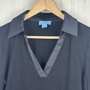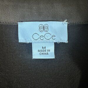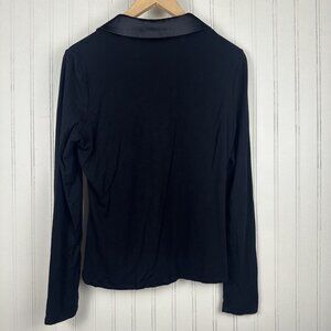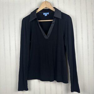CeCe Long Sleeve Black Collard V-neck In Women Size Medium Satin Collar, Stretch