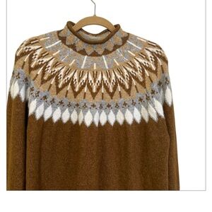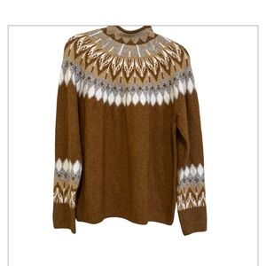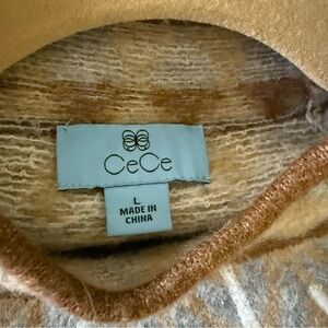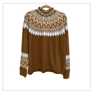 CeCe Long Sleeve Funnel Neck Fair Isle Print Sweater in Toasted Beige - Size L