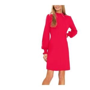 CeCe Long Sleeve Smock Cuff Mock Neck Sweater Dress Womens Size Large Magenta