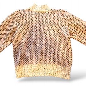 CeCe Marled Knit Mock Neck Sweater L NWT Chunky Jacquard Blouson Sleeve