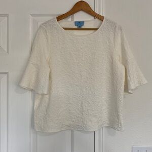 CeCe NWOT textured cream blouse with quarter length sleeves.