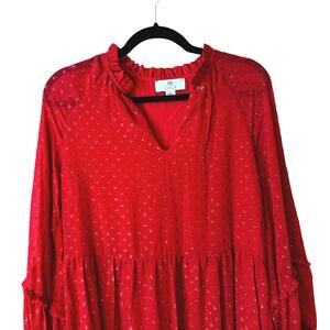 CeCe New Women's Long Sleeve Clip Dot Tiered Mini Dress Red Small Cottagecore