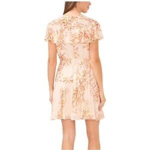 Step into elegance with this vibrant orange mini dress by CeCe, designed for wedding guests and cocktail events. Featuring a flattering fit and flare silhouette, the dress boasts a crew neck and charming short flutter sleeves for a touch of femininity. Its playful design ensures you stand out at any occasion.