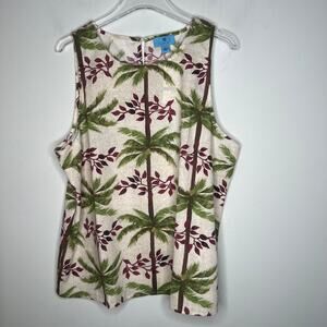 CeCe Palm Tree Linen Sleeveless Blouse Top Size XL