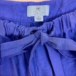 CeCe Paper Bag Shorts Relaxed Fit Pull On Elastic Tie Waist Pockets Blue Size 6