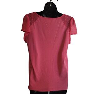 Description: CeCe Pink/Coral Butterfly/Flutter Short Sleeve Blouse Size Medium