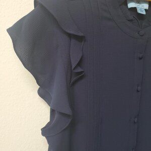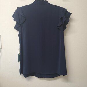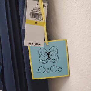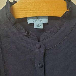 Lovely, size Medium CeCe pintuck blouse in navy. Fabric covered buttons. New with tags.