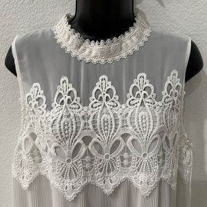 CeCe | Pleated Lace Sleeveless Dress | High Neck | Chiffon | Size 12 | NORDSTROM