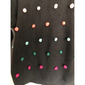 CeCe Pom Pom Sweater Women's Size Large Ribbed Trim Black NEW