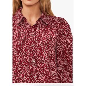 CeCe Puff Long Sleeve Button-Down Floral Blouse Top | Plus 1X, Mulberry Red