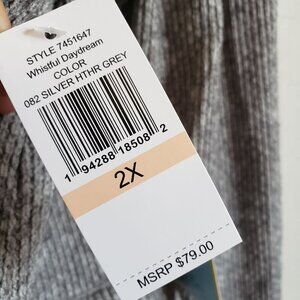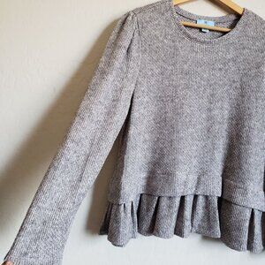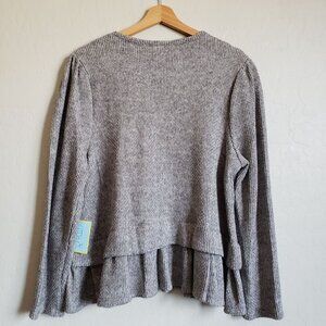 NEW CeCe Puff Sleeve Knit Peplum Layered Ruffles Sweater Whistful Daydream Silver Heather Grey Size Women's 2X Plus
