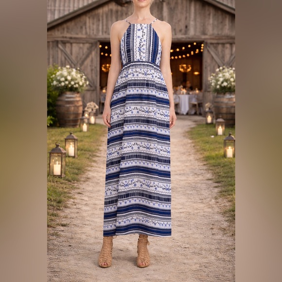 CeCe RIVIERA STRIPE-PRINT MAXI DRESS A floral-and-stripe print brings summery charm to a fitted A-line maxi dress that bares your shoulders to the sun with a halter-style, open-back bodice suspended from ultra-thin, lingerie-style straps ~ Adjustable straps - Square neck - Sleeveless - Fully lined - Nonstretch fabric - 100% polyester -