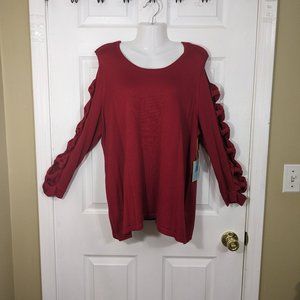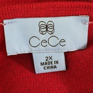 CeCe Really Red 3/4 Sleeve Cut-Out Bows Crewneck Sweater - size 2X NWT
