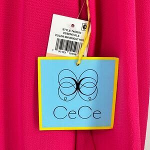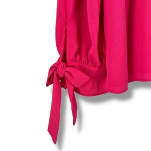 CeCe Ruffle Tie Sleeve V Neck Blouse Shirt Womens Plus Size 1X Bright Rose Pink