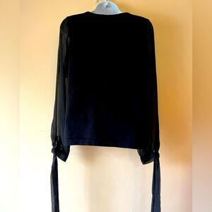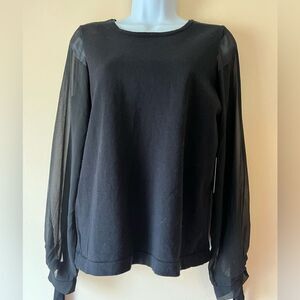 Very pretty black knit sweater with sheer sleeves. Just gorgeous! This is brand new with tags by CeCe. Size S only.