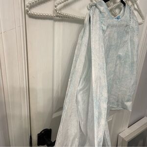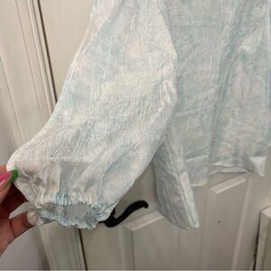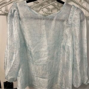 CeCe Sheer Blue Ruffle Slit Sleeve Blouse