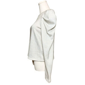 CeCe Silver Sparkle Off White Puff Sleeve Sweatshirt Sweater Medium Holiday