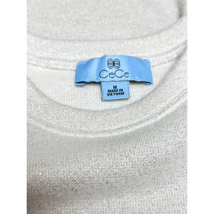 CeCe Silver Sparkle Off White Puff Sleeve Sweater Medium Holiday