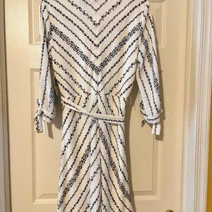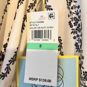 CeCe Sportswear Women's Tie Sleeve V-Neck Flower Chain Dress with Belt Size 8