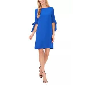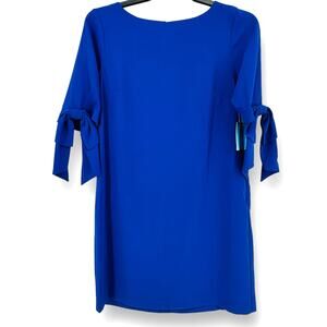 CeCe Tie Cuff 3/4-Sleeve Crew Neck Shift Dress Womens Size 8 Royal Blue
