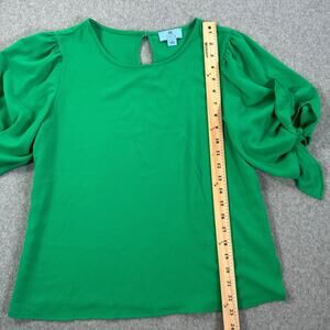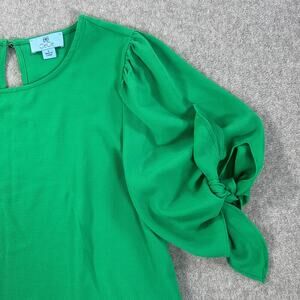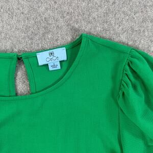 CeCe Tie Short Sleeve Round Neck Blouse Women's Small Green