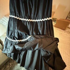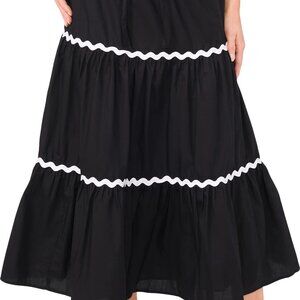 CeCe Tiered Skirt, Black with White Ric Rac Trim, Size Medium, NWT