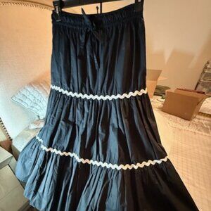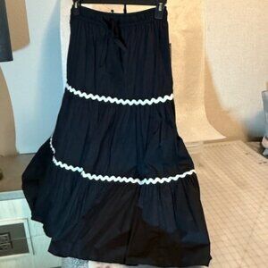 Contrasting rickrack trim adds a stunning finishing touch to this flowy tiered midi/ maxi skirt made from lightweight cotton and topped with a comfortable drawstring waist. 35 1/2" length Elastic/drawstring waist, Fully Lined 100% cotton, Machine wash. New with Tag, Never Worn