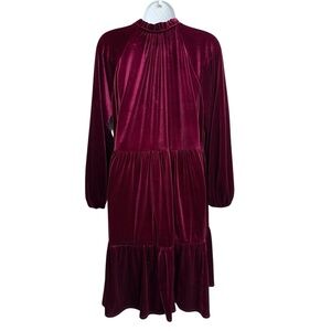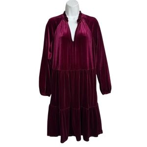 CeCe Tiered Velvet Babydoll Dress Women’s Plus 1X Long Sleeve V-Neck burgundy
