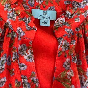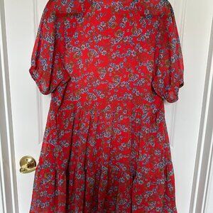 CeCe red babydoll dress with blue forget-me-not flowers - Size L