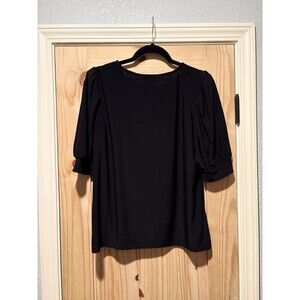 CeCe Top Womens Size Large Black Puffer Sleeve Polyester Round Neck Blouse Work
