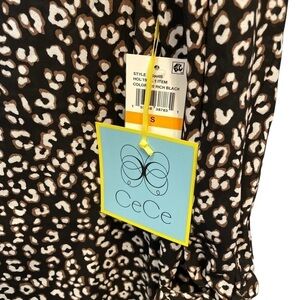 CeCe V-Neck Tie Cuff Blouse in Rich Black Leopard Print Small