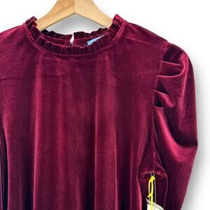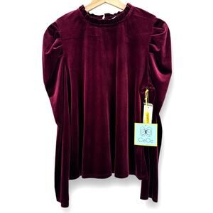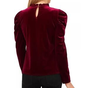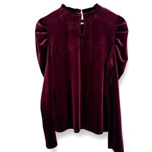 CeCe Velvet Ruffle Trim Puff Sleeve Shirt Womens Size Medium Wine Burgundy