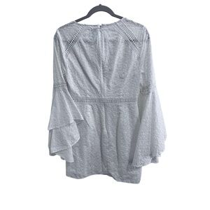 CeCe White Eyelet Fabric Large Bell Sleeves Ruffled Cuffs Mini Dress Size 10