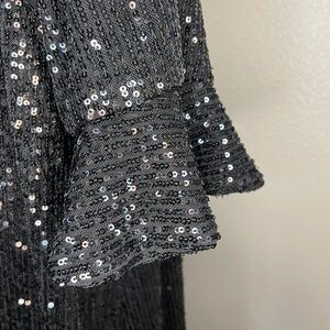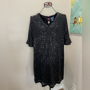 CeCe Women's 1X Black Sequin Cocktail V-Neck Dress
