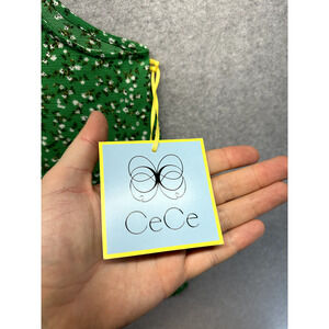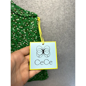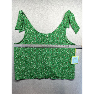 CeCe Womens Blouse Tank Top Size XL Green Floral Tie Shoulder Sleeveless NWT