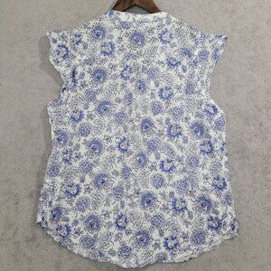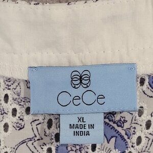 CeCe Womens Blue & White Floral Lace Trim Blouse Size XL