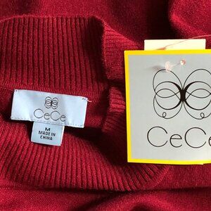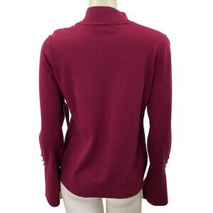 CeCe Womens Burgundy Mock Neck Sweater With Pearl Button Cuffs M NWT