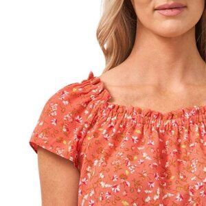 CeCe Womens Coral Stretch Ruffled Floral Short Sleeve Off the Shoulder Blouse
