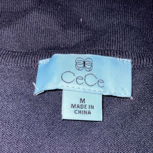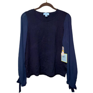 CeCe Women's Cotton Chiffon-Sleeve Mixed-Media Sweater Navy SIZE: M NWT
