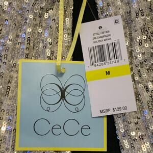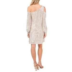 CeCe Womens Dress Medium NWT Bow Shoulder Long Sleeve Sequin Champagne Cocktail