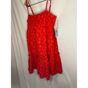 Keywords: CeCe, Womens Dress, Sleeveless, Floral Dress, Red Dress, Ruffle Hem, Party Dress, Cocktail Dress, Summer Dress, Textured Dress, L, Large