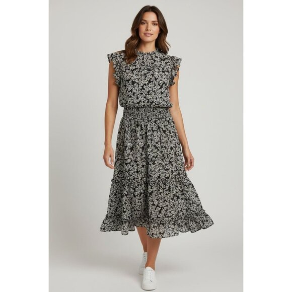 CeCe Women's Floral Flutter Sleeve Smocked Midi Dress SMALL