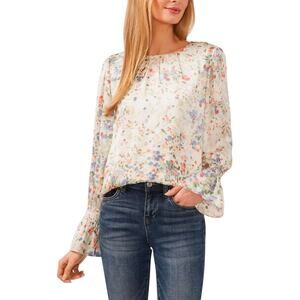CeCe Women's Long Sleeve Smocked Cuff Blouse Floral Size 3X