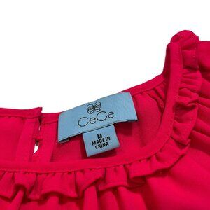 CeCe Women's Pink Blouse Top Size Medium Short Sleeve Ruffle