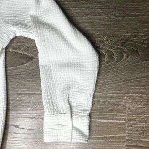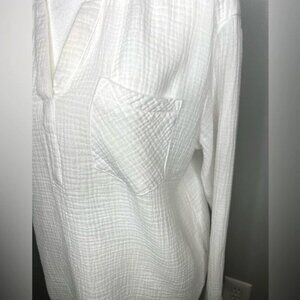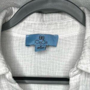 CeCe Womens Popover White Cotton Long Sleeve Button-Down Shirt Size M