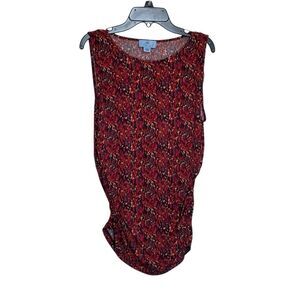CeCe | Women’s Rust Multi Watercolor Print Shirred Sides Short Sleeve Blouse Top