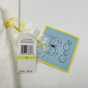 CeCe Womens Size 4 Delicate Delight Jacquard Straight-Leg Pants in New Ivory $99