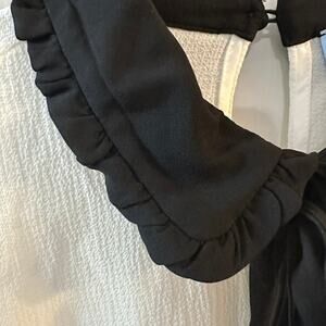 CeCe Women's White Flowy Black-Tie Collared Blouse with Bell Sleeves Medium