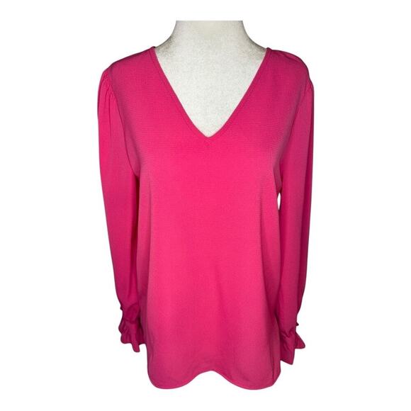 CeCe Women's XS Hot Pink V-Neck Long Sleeve Blouse Casual Top NWOT
